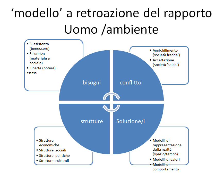 In sostanza l’uomo ha bisogni come gli organismi di qualunque tipo. La sua vittoria nell’evoluzione è data dal fatto che non solo ha i bisogni ma li ìsente’, li ‘conosce’, li ‘simbolizza’ dà loro senso: e impara cioè a percepirli come problemi da risolvere e a risolverli in modo non naturale, appunto attraverso modalità che l’antropologia da più di un secolo chiama ‘cultura’.